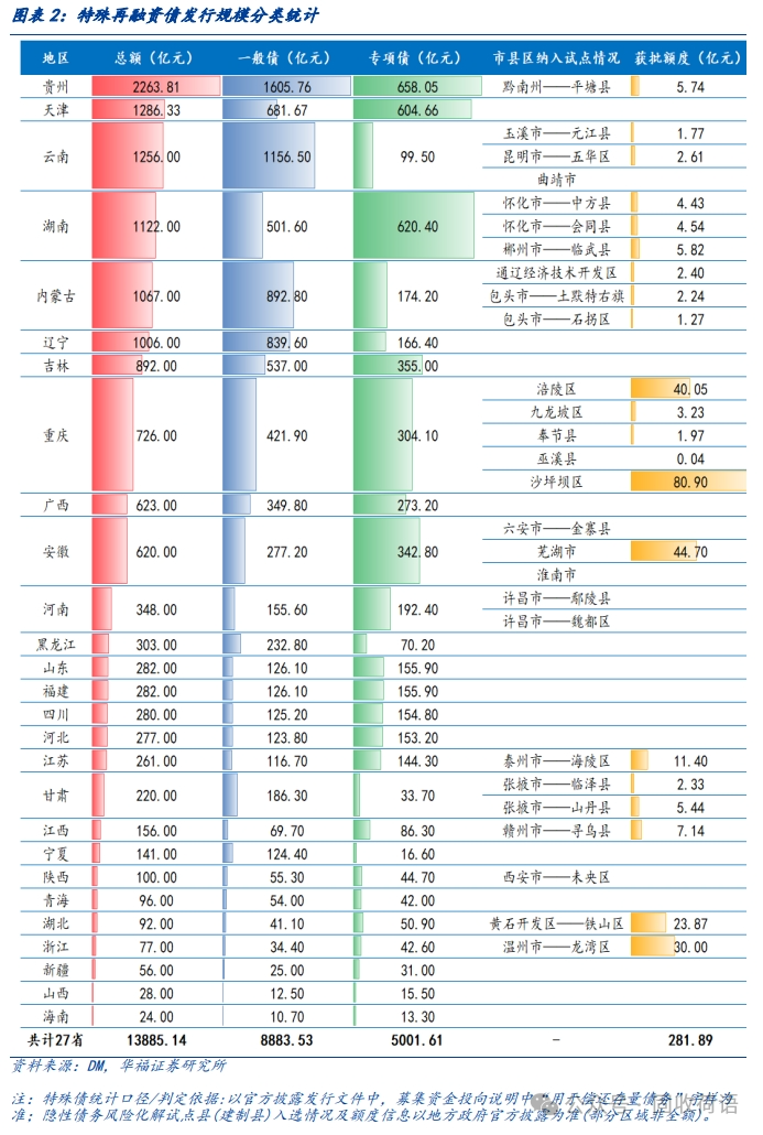 目前化債手段可以歸納以下幾類,分別為特殊再融資債置換、銀行等金融機(jī)構(gòu)的合作支持、盤活存量資產(chǎn)、化債基金、城投平臺(tái)加速整合與市場(chǎng)化轉(zhuǎn)型。