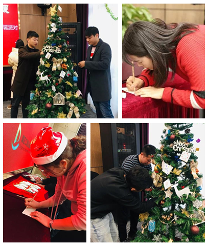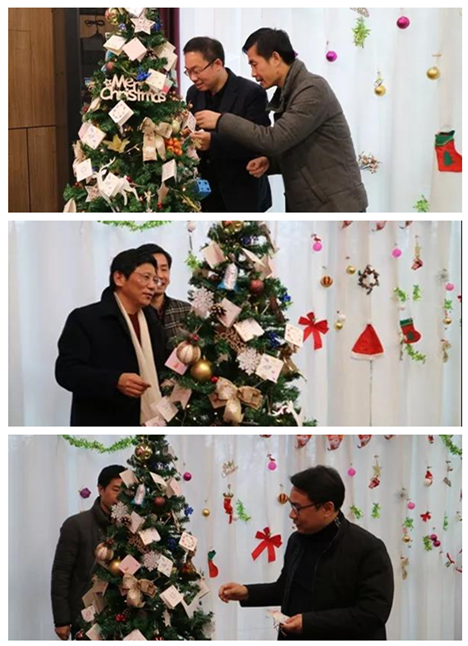 平安夜,行政人事部的同事們化身“圣誕老人”,貼心的為每一位同事準備了平安果;由鼎正大家庭共同裝飾的圣誕樹掛滿了大家親手寫的祝??ㄆ?,為圣誕節的到來更添一份濃濃的節日色彩。